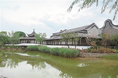 其中,“一湾水”是园林建设的主线,在一湾水的两边分别设有场馆、园林建筑等,在不断嵌套中互相借景、互相观赏,形成一条非常有趣的水带。“八桥”是指园中有跨越大河道的拱桥,也有串联亭台楼阁里的小桥。“画舫”用以概括漂亮的画舫游船,“十六亭”指园中总共设计了十六个亭子。