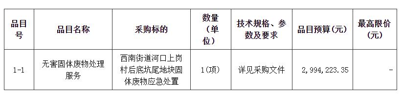 合同包1(西南街道河口上岗村后底坑尾地块固体废物启动应急处置项目):