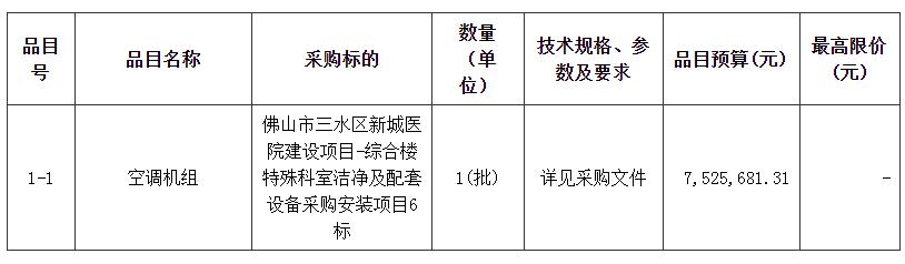 合同包1(佛山市三水区新城医院建设项目-综合楼特殊科室洁净及配套设备采购安装项目6标):