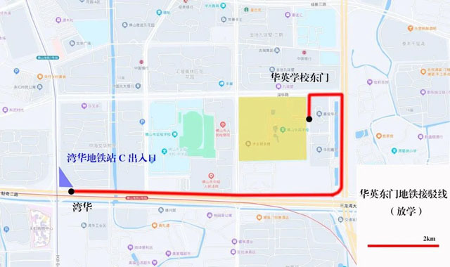 如何安全、快速地让学生到达地铁口,佛山公交从学生出行的实际需求出发,开通华英学校直达地铁口的华英东门地铁接驳线,解决学校到地铁的“一公里”出行,满足学生周末放学出行需求的同时,缓解因私家车接送学生带来的校园周边交通拥堵问题。