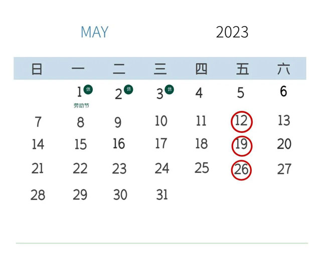 5月开行日历: