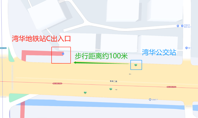 下车后,往前步行100米到达湾华地铁站