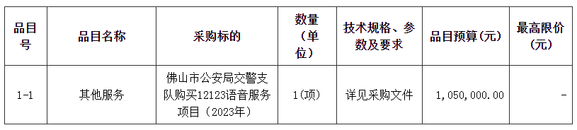 项目名称:佛山市公安局交警支队购买12123语音服务项目(2023年)