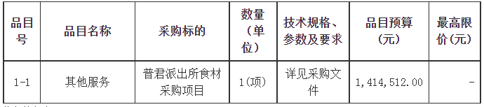 普君派出所食材采购项目采购项目的潜在供应商应在广东省政府采购网https://gdgpo.czt.gd.gov.cn/获取采购文件,并于 2023年05月18日 09时30分 (北京时间)前提交响应文件。