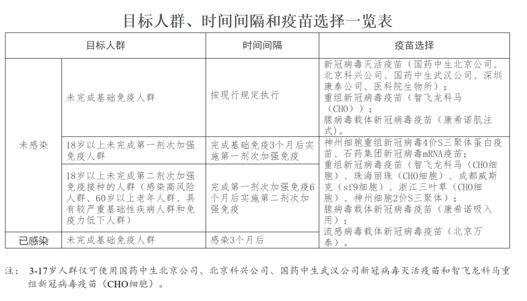 《应对近期新冠病毒感染疫情疫苗接种工作方案》明确的目标人群、时间间隔和疫苗选择。