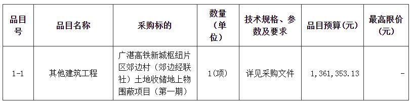 合同包1(广湛高铁新城枢纽片区郊边村(郊边经联社)土地收储地上物围蔽项目(第一期)):