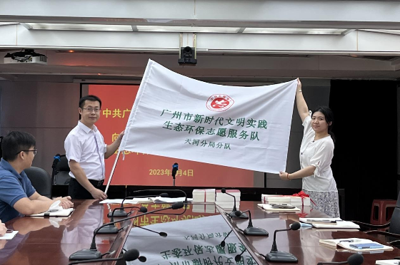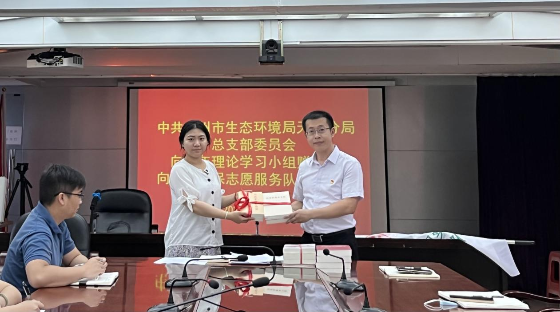 活动现场,分局党总支负责人向青年理论学习小组赠送学习书籍,并向生态环保志愿服务队天河分局分队授旗。沉甸甸的学习书籍、飘扬的志愿旗帜,是分局对青年同志的殷殷期盼,引领广大青年永远跟党走、奋进新征程、建功新时代。