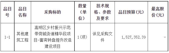 概述:高明区乡村振兴示范带荷城街道精华段项目-富湾转盘提升改造建设项目采购项目的潜在供应商应在广东省政府采购网https://gdgpo.czt.gd.gov.cn/获取采购文件......