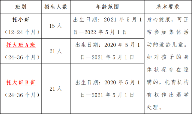 据九江尚孺托育中心相关负责人介绍,该托育中心从5月10日起面向全镇有托育需求的家长,招收1-3岁婴幼儿。该托育中心室内建筑面积达650平方米,计划开设3个托班(托小班1个15人/班、托大班2个21人/班)。