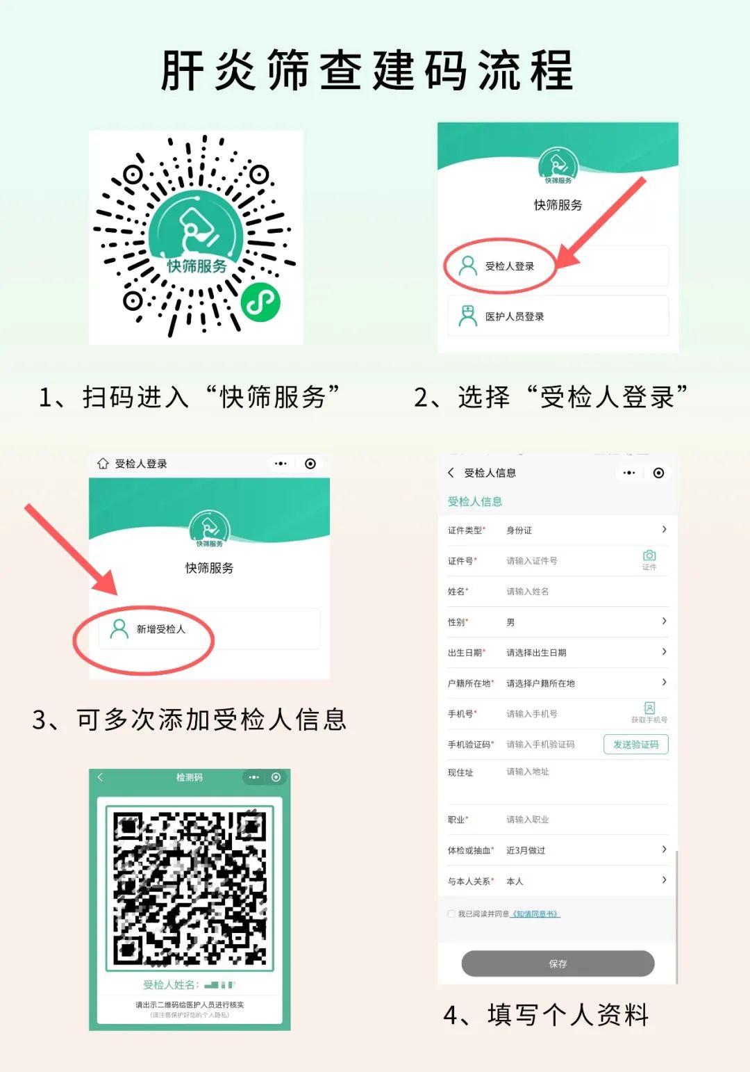请提前准备筛查码,填写个人信息后生成二维码并截图保存。筛查时请带上身份证。