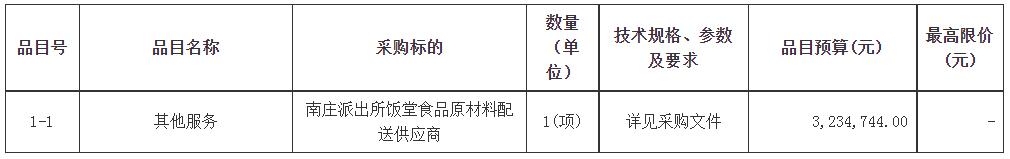 项目名称:南庄派出所饭堂食品原材料配送供应商