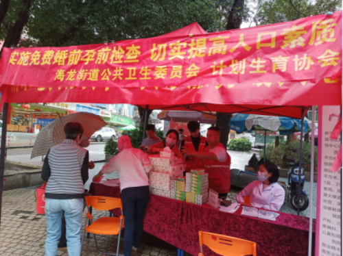 现场通过免费派发孕前及产前检查宣传册、专家义诊、测量血压、免费派发避孕药具、计生宣传品等形式,向广大群众普及国家公共卫生服务政策。荔湾区妇幼保健院、海龙街社区卫生服务中心科普宣传产前筛查对地中海贫血(简称地贫)的预防作用,让群众对地贫有更深入的认识。