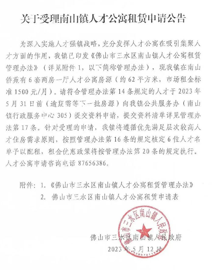三水一批人才公寓租赁申请开始!精装修,租金四折甚至免费!