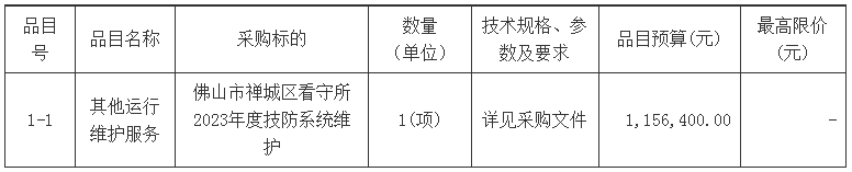 佛山市禅城区看守所2023年度技防系统维护项目采购项目的潜在供应商应在广东省政府采购网https://gdgpo.czt.gd.gov.cn/获取采购文件,并于 2023年05月23日 09时30分 (北京时间)前提交响应文件。