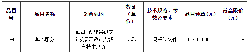 合同包1(采购创建省级安全发展示范试点城市项目服务):