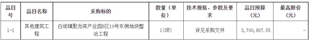 合同包1(白坭镇聚龙湾产业园B区10号东侧地块整治工程):