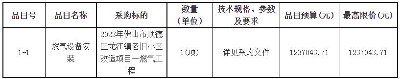 合同包1(2023年佛山市顺德区龙江镇老旧小区改造项目—燃气工程):