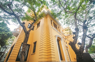 此次扩容的新展区为清末买办商人陈廉伯故居。黄色外墙、欧式柱廊、弧形阳台,还有“广州最美旋转楼梯”……这座建于20世纪20年代的西式花园住宅造型精美、气派非凡, 1993年被公布为广州市文物保护单位,是荔枝湾畔重要节点建筑。2016年开始,该建筑开始进行围蔽修缮,历时4年多在2020年12月底完工,此次正式对外开放,展出主题展览《利通四海 义济天下——广州商人风貌展》。