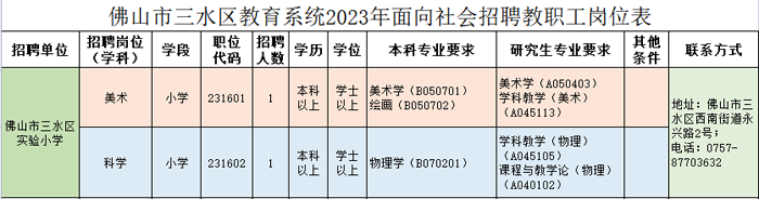 考生登录“三水区教师招聘信息管理系统”进行网上报名,每位考生限报一个职位。考生须如实填写报名信息,并上传相关材料图片。报名网址为: