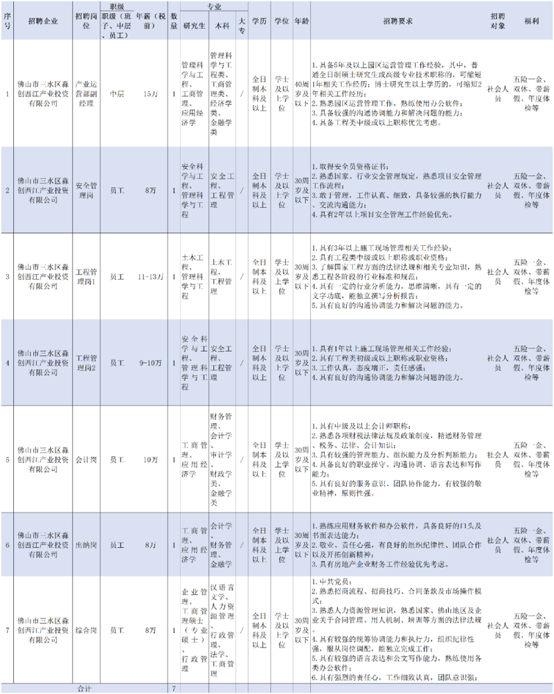 详见《淼创西江公司公开招聘岗位表》《淼智创公司公开招聘岗位表》《淼创兴塘公司公开招聘岗位表》(附件1-3)。