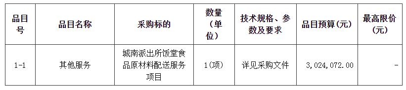 项目名称:城南派出所饭堂食品原材料配送服务项目