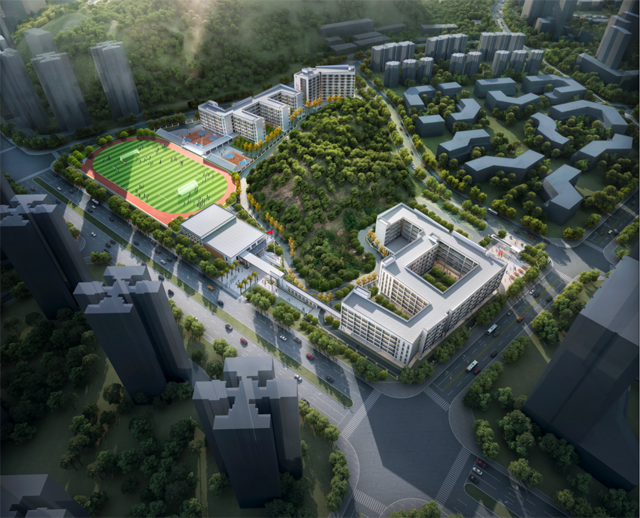 学校设计负责人介绍,校园将打造“一轴两翼四组团”的规划布局形态,在大同路设置学校形象入口大门,并以此为起点,山体为终点,打造校园的礼仪主轴,主轴左翼融合了公共运动区、中学区、生活区3大组团,右翼则设置相对独立的小学组团。