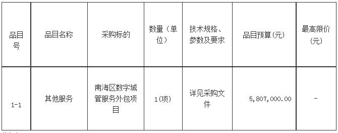 南海区数字城管服务外包项目招标项目的潜在投标人应在广东省政府采购网https://gdgpo.czt.gd.gov.cn/获取招标文件,并于2023年06月12日09时00分(北京时间)前递交投标文件。