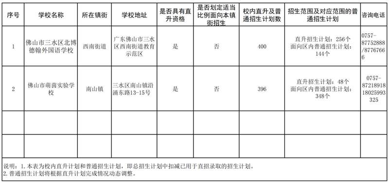 1.佛山市禅城区邦耀学校、佛山市禅城区颖林大江小学这两所民办学校停止招生;