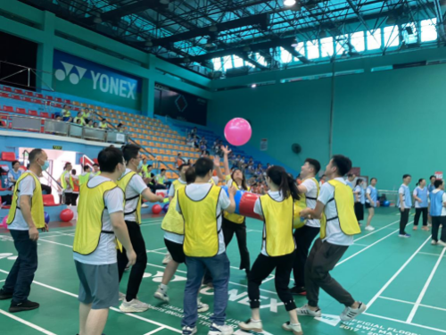 活动中,参加活动的金花街道干部职工分成六支参赛队伍,他们英姿飒爽、昂首挺立,坚定有力地喊着队伍的口号,声音响彻了整个体育馆,充分展现着金花街道高质量全面发展“答卷人”的精神风貌。在工作人员的指引下,各队有条不紊地开始了比赛。这次活动设乒乓球接力、圈圈到底、心心相印和众星捧月四个比赛项目。比赛中,队长运筹帷幄,场上的队员肆意挥洒汗水,场外的队员热情呐喊助威。干部职工们在比赛中竞争,在比赛中协作,在比赛中享受青春活力的肆意张扬。