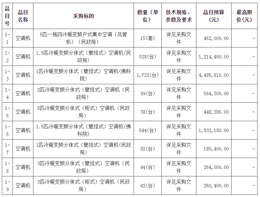 项目名称:佛山科学技术学院、佛山市民政局绿色建材空调联合批量采购项目