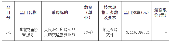 项目名称:大良派出所购买交通勤务服务项目(第二次)