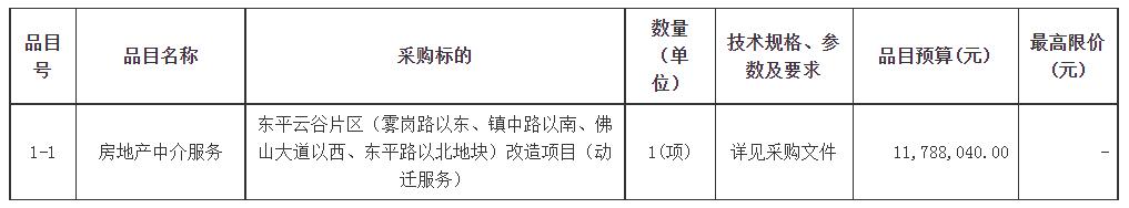 合同包1(东平云谷片区(雾岗路以东、镇中路以南、佛山大道以西、东平路以北地块)改造项目(动迁服务)):