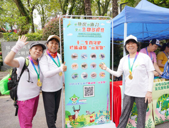 随着喇叭响亮的“哔”一声,参赛者从白云山南门快速进入主赛道,朝着终点山顶广场进发。此次登高赛全程约2.6公里,沿途共设4个补给打卡点和应急医疗点,参赛者在欣赏广州“市肺”白云山美景、呼吸高浓度负氧离子的同时,通过沿路的展板宣传,更深入了解广州近年来在构建生态文明体系、保护生物多样性所作出的努力和取得的成绩,以及作为岭南动植物基因库的白云山,其自然资源的丰富性。此外,参赛者还能寓赛于乐,在行进中参加十二生肖守护珍稀动物“元宠物”线上游戏。游戏玩法简单,只需输入姓名和生肖,系统便会自动配对出与之生肖对应的所需守护的珍稀动物,并生成一张个人专属海报,从而成为一名生物多样性的“守护者”。