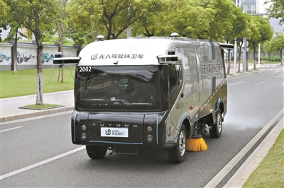 在广州国际生物岛,广州首个开放道路下的全自动驾驶环卫车已经运行了大半年时间。它没有传统的驾驶舱,更没有司机。每日作业时间自零时开始,至19时结束,一周7天连续开展环卫作业。可在全自动驾驶的情况下安全行驶,在需要清洁的路段全自动展开环卫作业,完成道路清扫、洒水降尘、喷洒消杀等保洁任务。