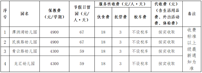 潭洲湾幼儿园、青云路幼儿园、民族路幼儿园、龙汇幼儿园