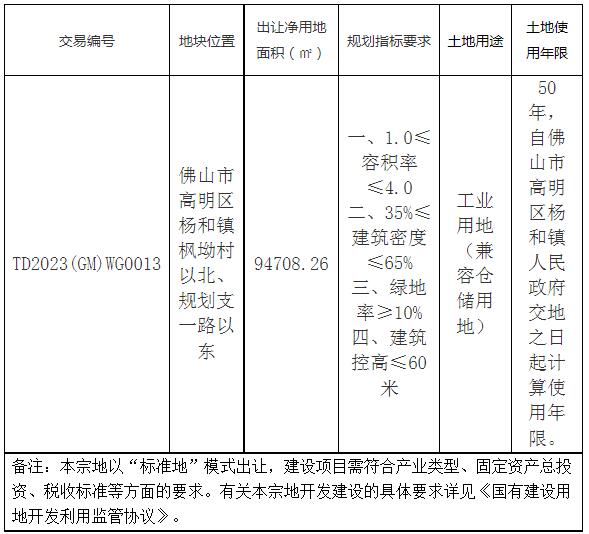 五、有意参与竞买者可于2023年5月24日后登录网上交易系统下载该宗地块的《佛山市高明区国有建设用地使用权网上挂牌出让文件》。