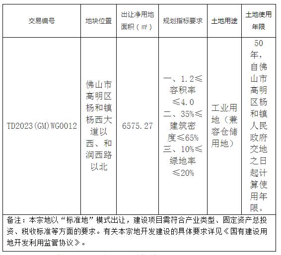 五、有意参与竞买者可于2023年5月24日后登录网上交易系统下载该宗地块的《佛山市高明区国有建设用地使用权网上挂牌出让文件》。