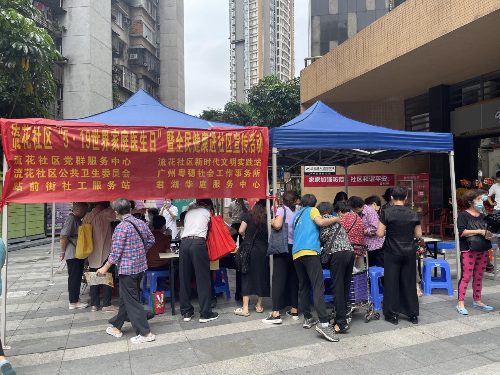 5月23日上午,站前街道公共卫生委员会、社区卫生服务中心、流花社区新时代文明实践站、社工站联合在君湖华庭T5广场,开展“5·19世界家庭医生日”暨全民健康进社区宣传活动。