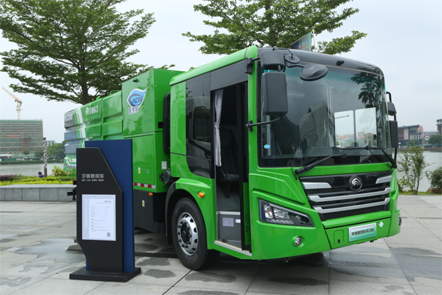 环卫车辆因应用场景的特殊性,经常需要夜间作业,低噪音、高效率、低能耗的氢燃料产品成为行业新选择。宇通本次现场展示的氢燃料洗扫车,能够全面满足城区各类道路的路面洗扫保洁、路标、广告牌的清洗作业要求。最快8分钟的加氢时间,提供更长的作业时间,提升连续作业效率,全景前风挡设计,透视折叠门提供更大视野,更好保证作业安全。
