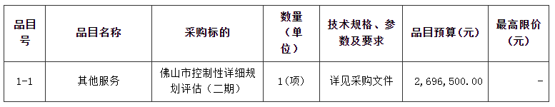 佛山市控制性详细规划评估(二期)招标项目的潜在投标人应在广东省政府采购网https://gdgpo.czt.gd.gov.cn/获取招标文件,并于 2023年06月16日 14时00分 (北京时间)前递交投标文件。