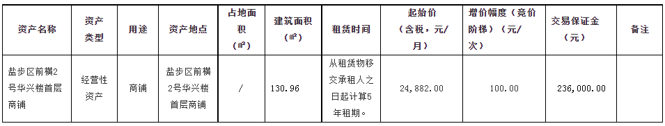 南海区大沥镇盐步区前横2号华兴楼首层商铺网上租赁竞投公告
