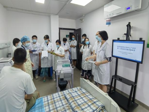 当天,广州市第一人民医院肾内科CHAPD项目专家组秦曙光主任医师、梁鸣主任医师等一行5人莅临荔湾区华林街道社区卫生服务中心进行CHAPD项目指导。在市一专家团队的指导下,荔湾区华林街道社区卫生服务中心顺利为首位腹膜透析患者开展了APD治疗。透析数据自动上传医护端,方便医护监控治疗效果并及时在线调整治疗处方,在家就可以享受类似住院的APD治疗的便利,不仅提高患者的生活质量,也大大地增加了患者的治疗信心。