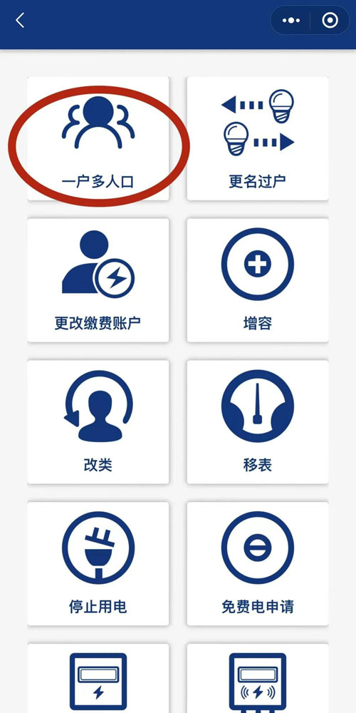 以“南网在线”微信公众号为例,依以下步骤即可在线办理:我的用电→业务办理→业务变更→一户多口。