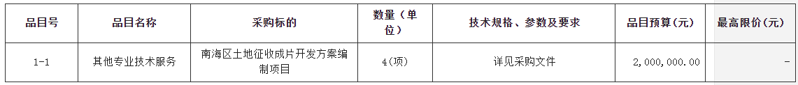 南海区土地征收成片开发方案编制项目采购项目的潜在供应商应在广东省政府采购网https://gdgpo.czt.gd.gov.cn/获取采购文件,并于2023年06月14日09时00分(北京时间)前提交响应文件。
