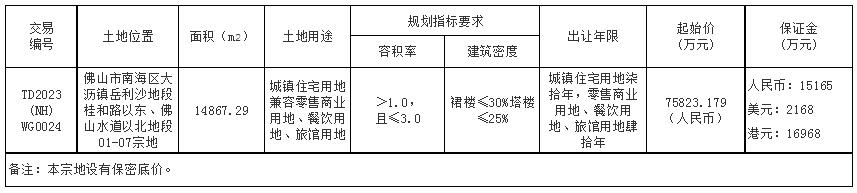 佛山市南海区国有建设用地使用权网上挂牌出让公告