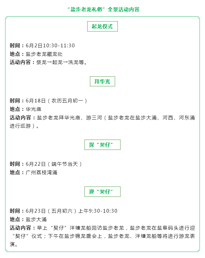 多年来,盐步老龙礼俗在端午节龙舟活动中不断传承,形成了特有的风俗仪式。