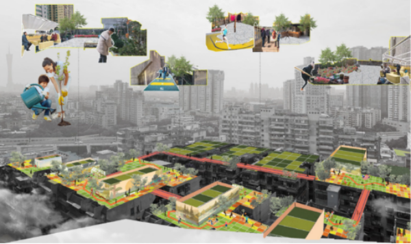 社区屋顶空间适儿化改造示意图(发动社区儿童,开展屋顶农场计划)