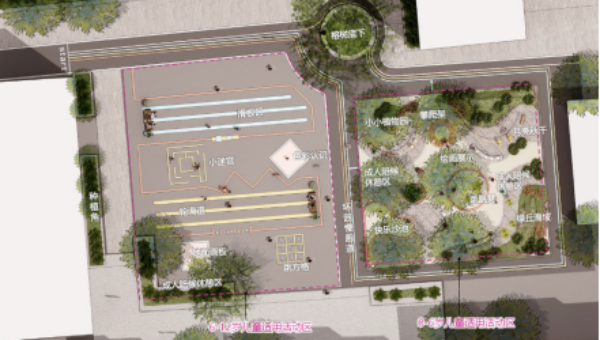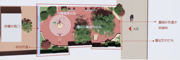 社区出行路径节点活动空间适儿化改造示意图