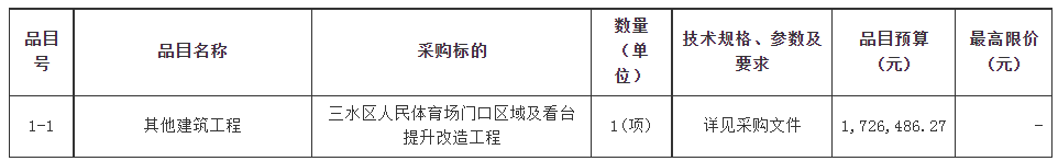 合同包1(三水区人民体育场门口区域及看台提升改造工程):