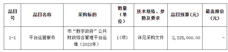 合同包1(市“数字政府”公共财政综合管理平台运维(2023年)):